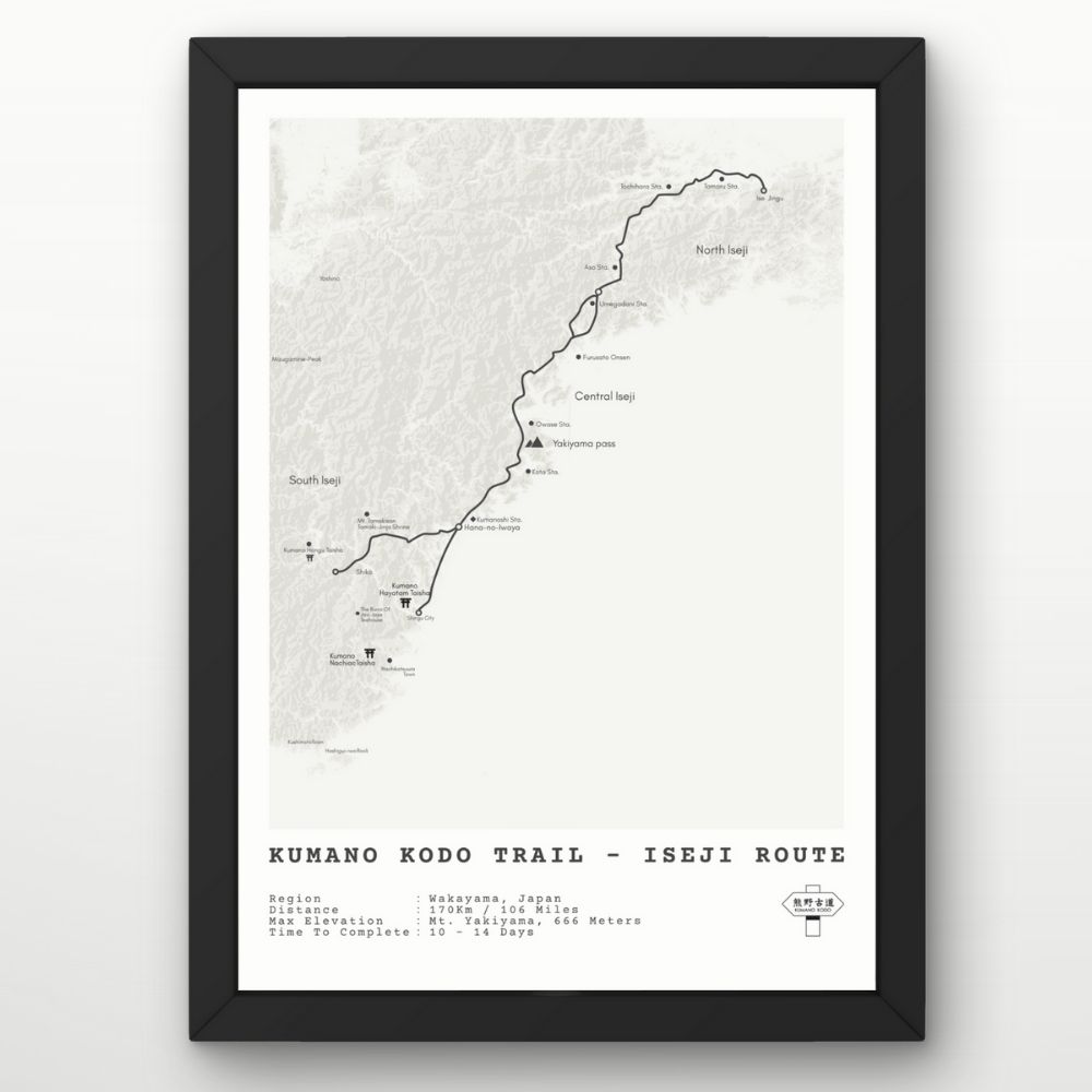 Celebrate your Kumano Kodo pilgrimage hike with our minimalist Iseji trail map.
